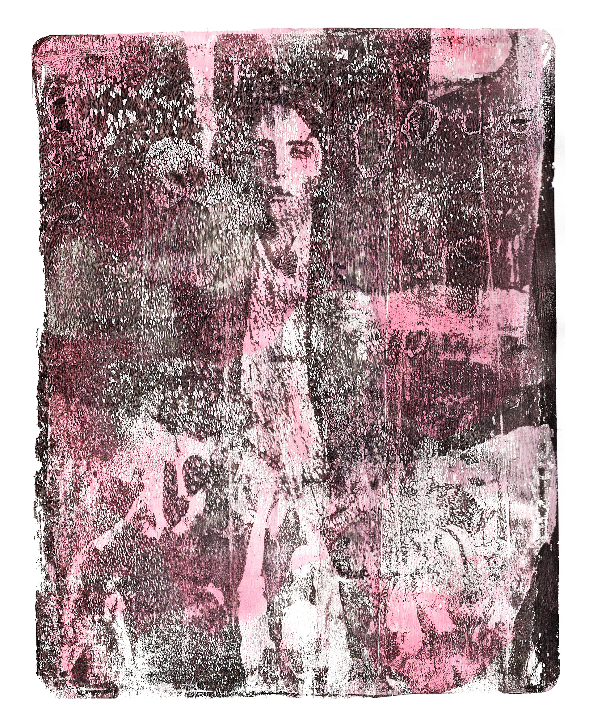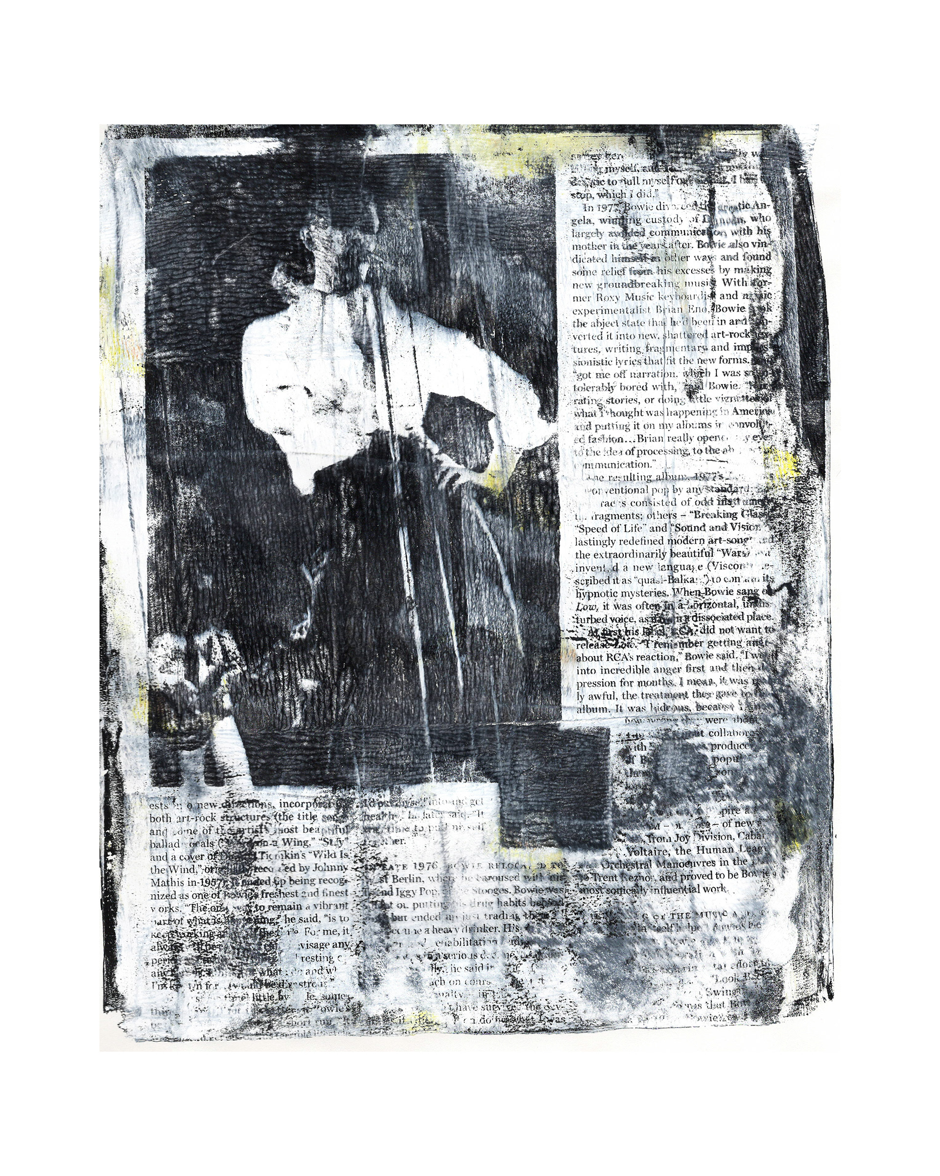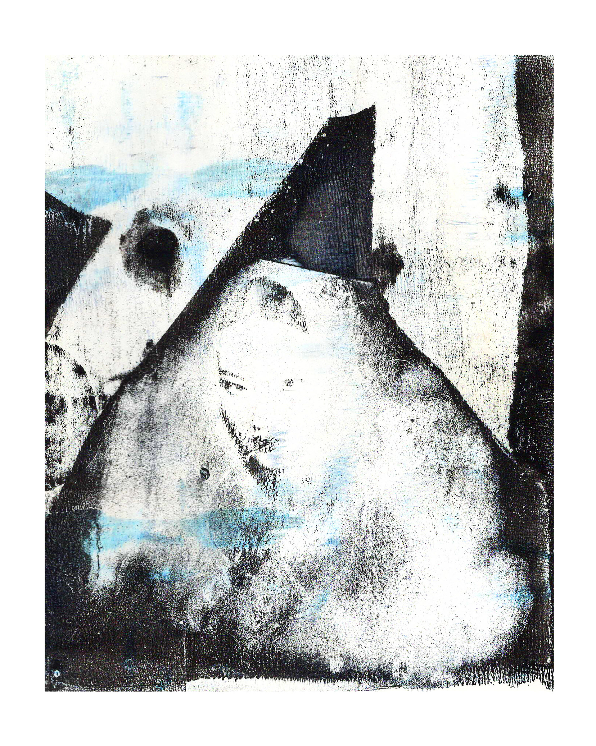 Mono prints, created using collage and acrylic paint with a gel plate printmaking process.