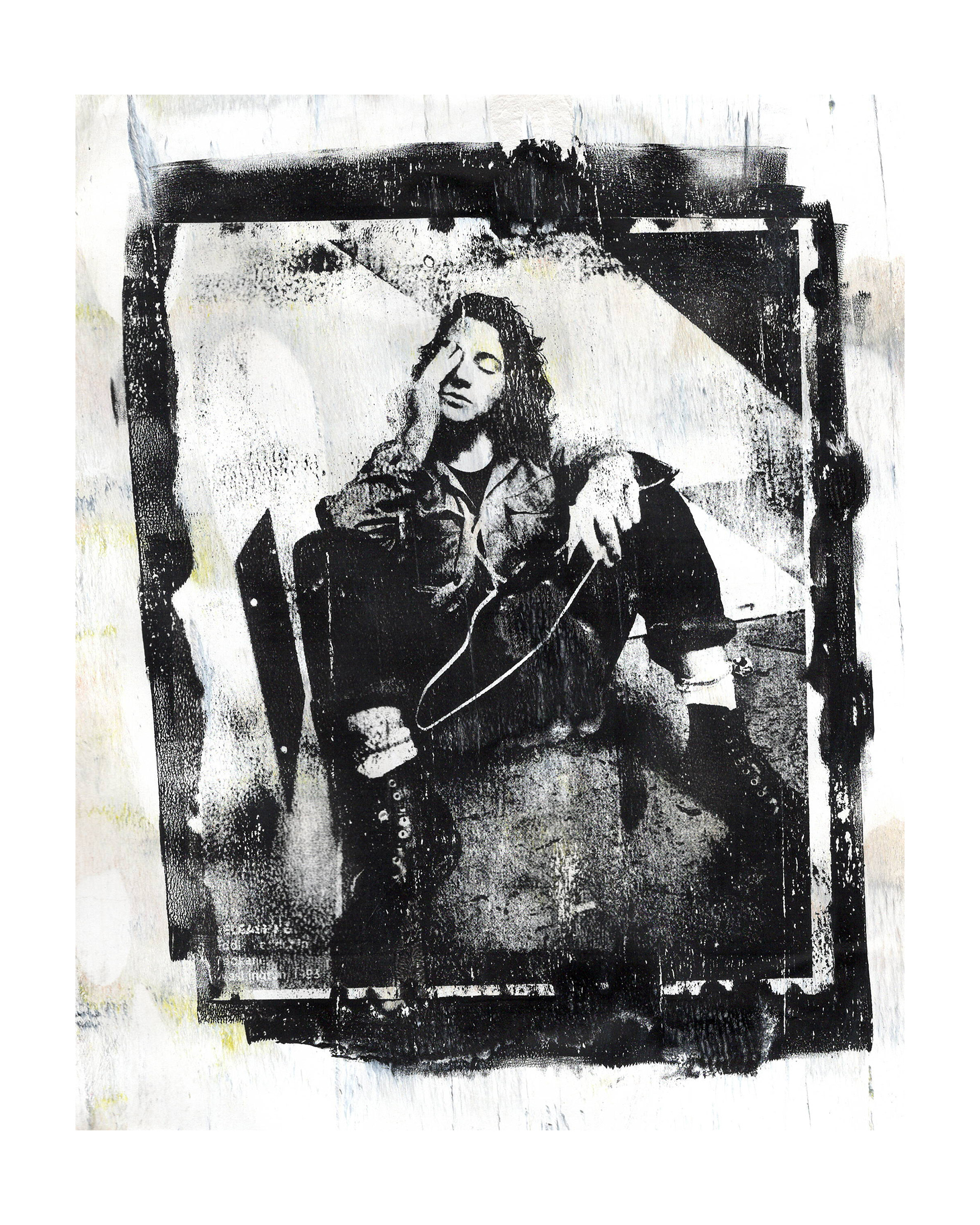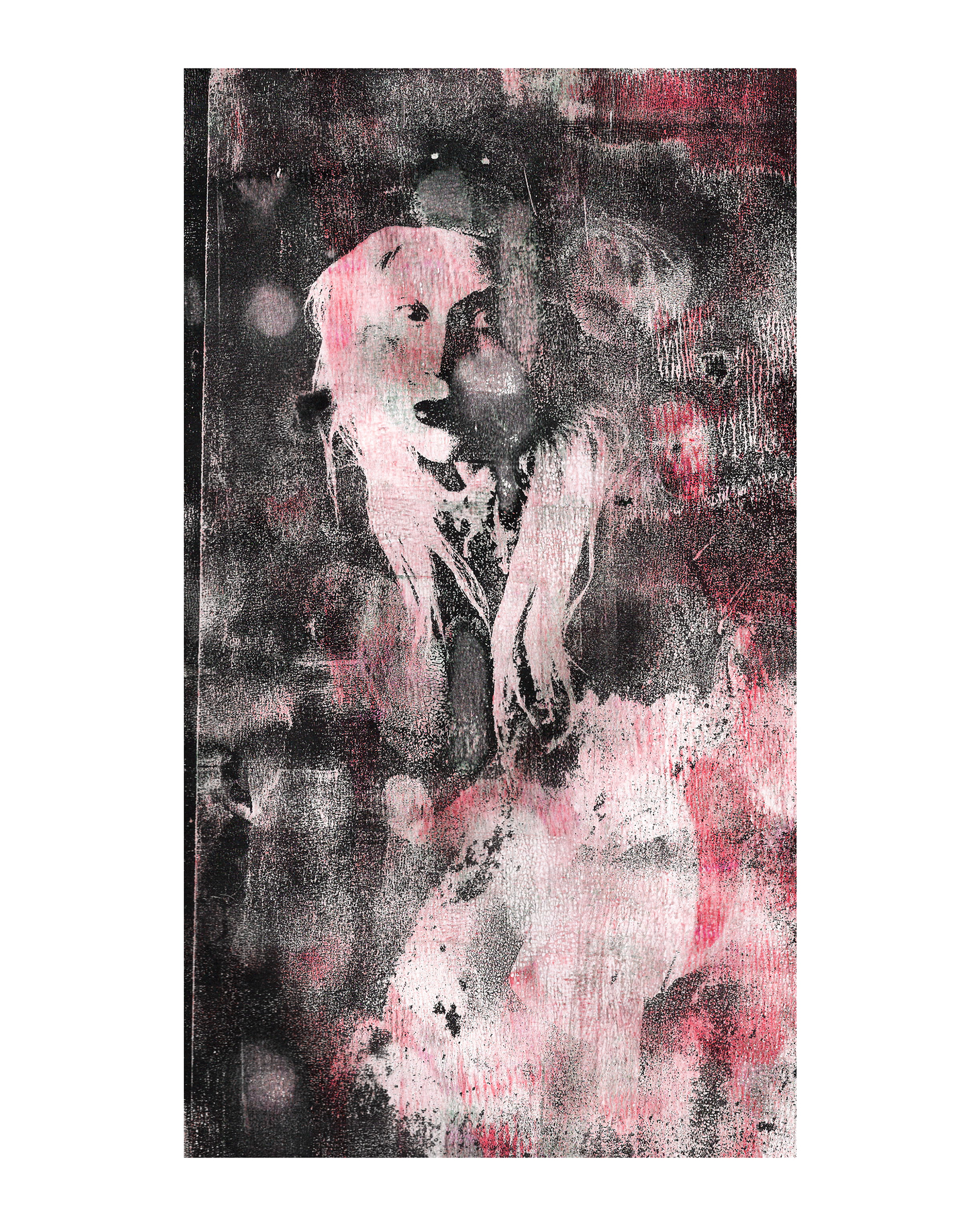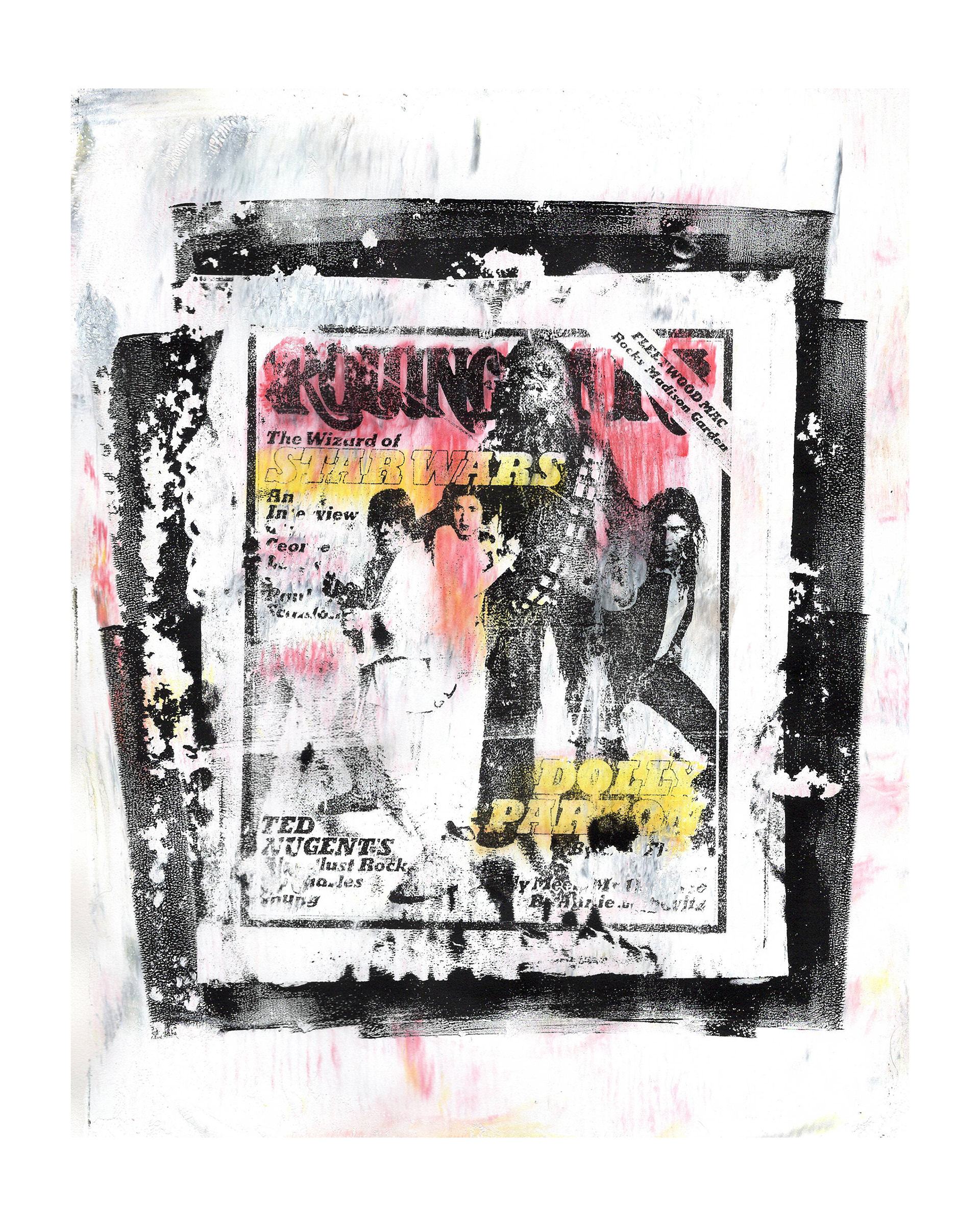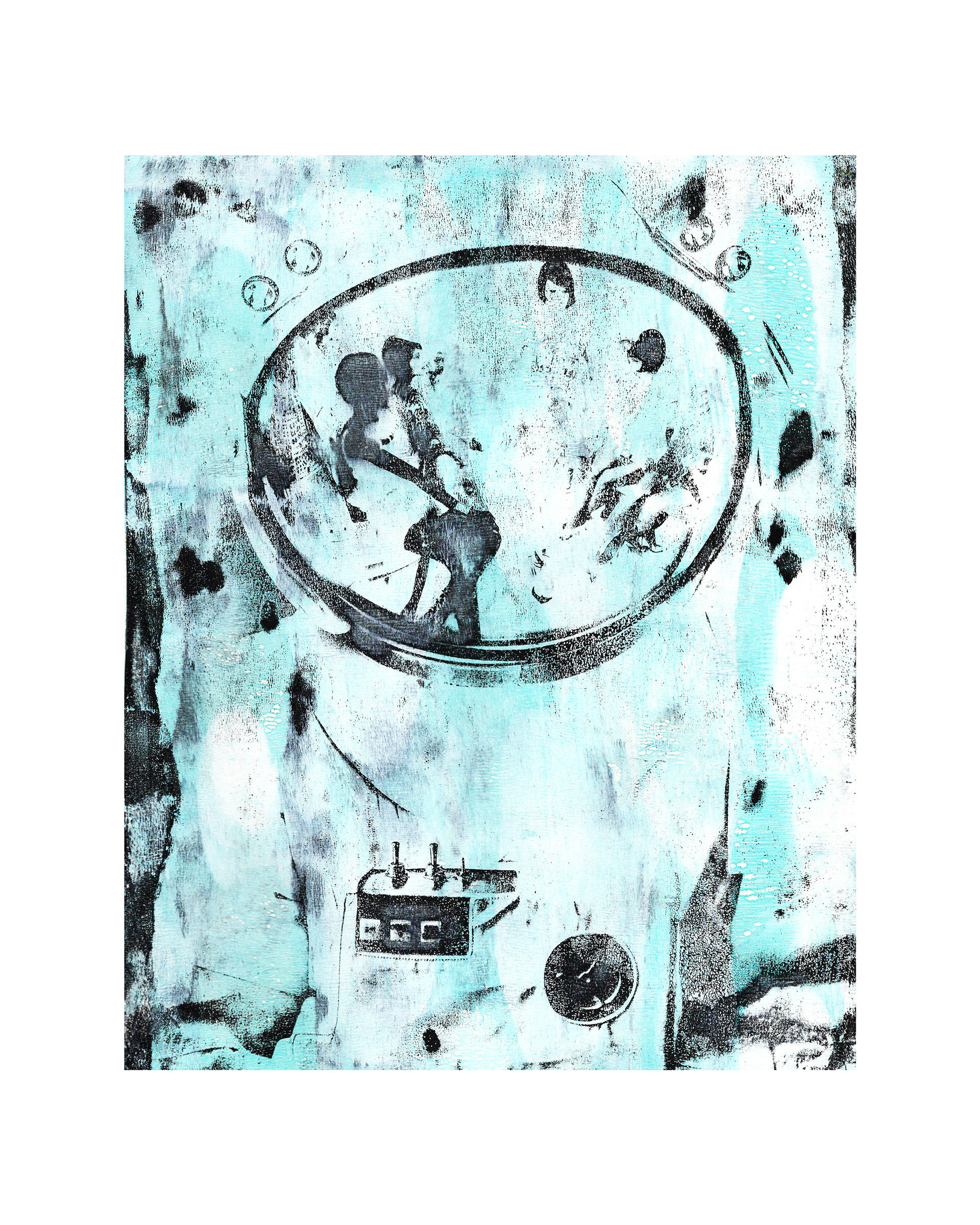 Mono prints, created using collage and acrylic paint with a gel plate printmaking process.